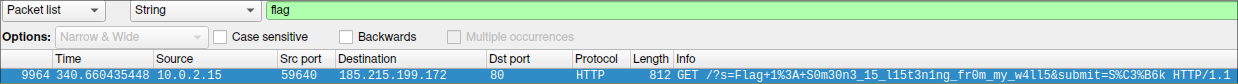 Indeed, the first part of the flag is in a parameter to a HTTP GET request.