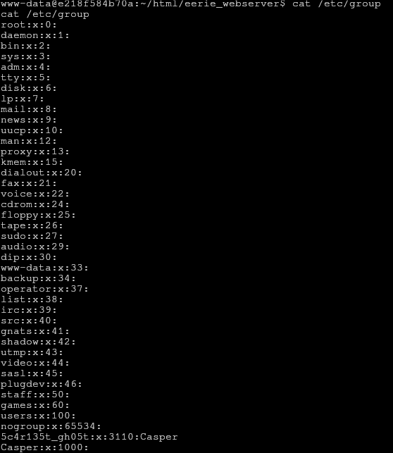 Inside /etc/group we find something interesting; it looks like a password for the only user account.