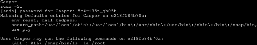 It turns out that we may run sudo /snap/bin/ls -la /root